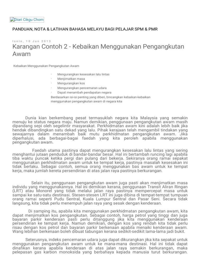 Ulasan Kebaikan Menggunakan Pengangkutan Awam - Karangan Contoh 2 Kebaikan Menggunakan Pengangkutan Awam Diari Cikgu Chom